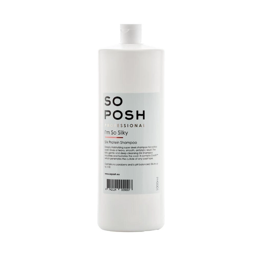 Complete Pro Behandeling – Voor de ultieme showhondafwerking gebruikt u onze I’m So Silky Shampoo, gevolgd door de So Posh I’m So Silky Rinse-Off Conditioner. Deze krachtige trio zorgt voor de zachtste, zijdezachtste en meest glanzende vacht, net als een showhond. SO POSH producten zijn van professionele kwaliteit – verwen uw harige vriend met de luxe die ze verdienen.